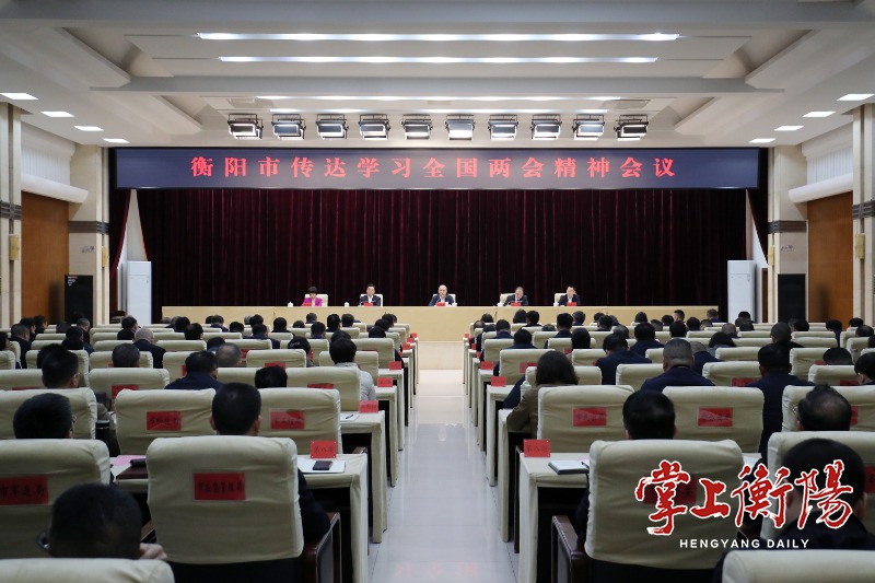 3月13日上午,衡阳市传达学习全国两会精神会议召开。市委书记刘越高出席会议并强调,要深入学习贯彻全国两会精神特别是习近平总书记在全国两会期间发表的系列重要讲话精神,在全市范围迅速兴起学习宣传贯彻浓厚氛围,在不断解放思想中狠抓工作落实,奋力推动区域中心化进程取得新突破、迈上新台阶。全国人大代表、市委副书记、市长朱健传达了习近平总书记在全国两会期间发表的系列重要讲话精神及第十四届全国人民代表大会第二次会议、全国政协十四届二次会议等精神。