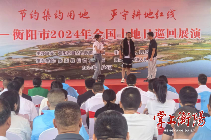 自6月22日开始,市自然资源和规划局组织表演队和志愿者去到衡山县福田铺乡、衡阳县渣江镇、衡南县三塘镇开展巡回展演。在展演现场,三地都展出了许多有关土地、地质灾害防治等内容的海报,设立了咨询台、准备了宣传册向乡民发放,衡阳县还制作了耕地保护的情景剧在现场播放,并开出了十多台宣传车,奔赴各乡村向村民宣传。