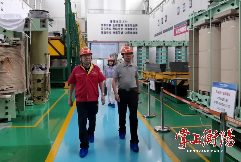 ▲2023年6月11日,市人社局党组成员、副局长陈泰山(前右)率市工伤保险服务中心负责人等赴特变电工衡阳变压器有限公司开展工伤预防宣传培训活动,并进行工伤预防风险点大排查调研。