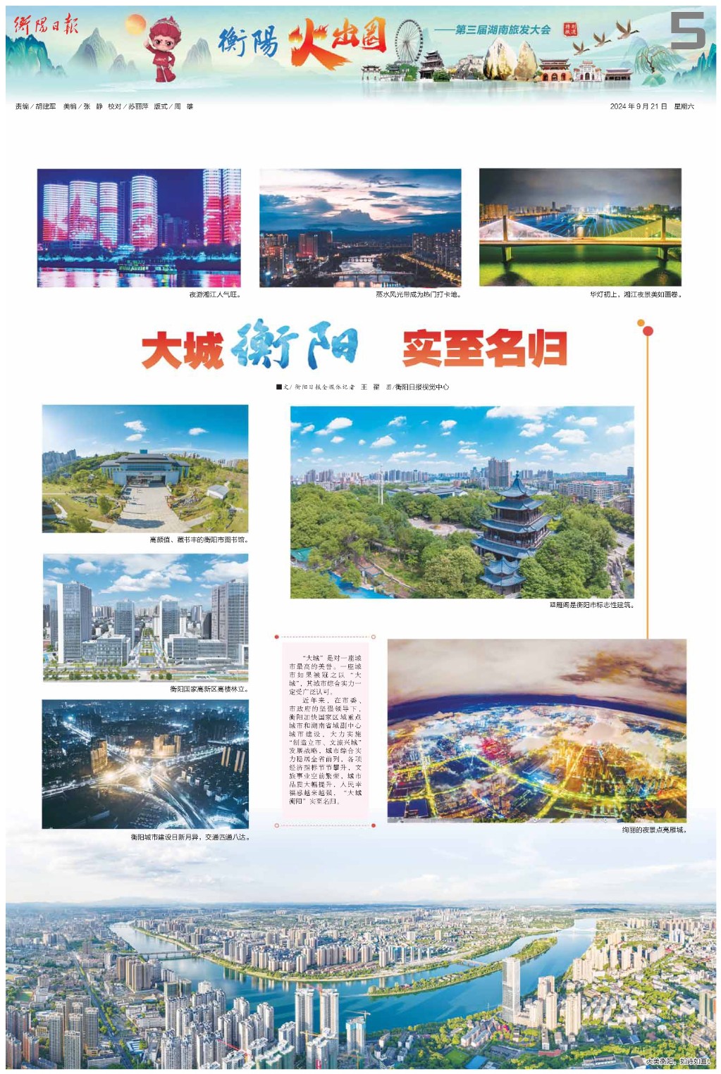 近年来,在市委、市政府的坚强领导下,衡阳加快国家区域重点城市和湖南省域副中心城市建设,大力实施“制造立市、文旅兴城”发展战略,城市综合实力稳居全省前列,各项经济指标节节攀升,文旅事业空前繁荣,城市品质大幅提升,人民幸福感越来越强,“大城衡阳”实至名归。