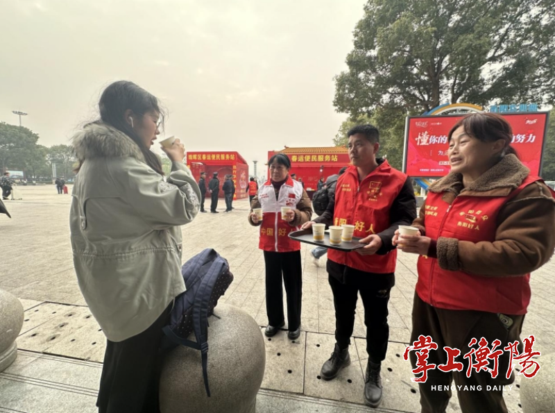 2月9日,春运进入返程高峰时段,高铁衡阳东站内人潮涌动,返乡旅客摩肩接踵。在这春运的繁忙时刻,珠晖区“身边好人”志愿者服务队的志愿者们坚守岗位,为旅客提供免费茶水、引导咨询、行李搬运等贴心服务,用无私奉献为春运旅途增添了一抹温馨的色彩。