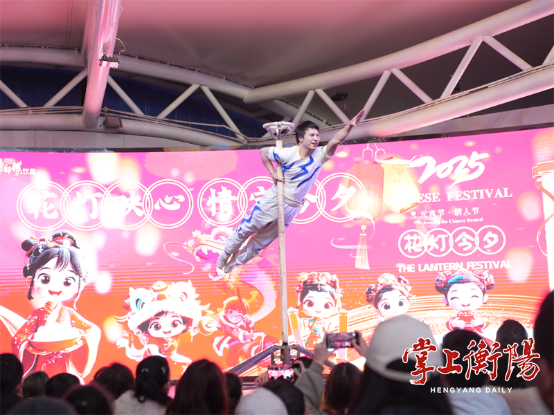 当天下午5时18分,随着三声开运锣响,红黄双狮踏着鼓点跃入人群。在“双狮献瑞”表演中,雄狮时而跃上高柱表演,时而俏皮地与孩童互动赠福。随后,惊险杂技、幽默“美猴王”互动秀等节目轮番上演,给观众带来了一场视听盛宴。现场还设有猜灯谜擂台、成语接龙挑战赛等互动环节,让市民们在感受中华语言文化的魅力的同时,还能获得精美的节日礼品。