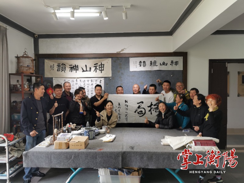 网红周正斌在参加完主题阅读活动后,更是豪情满怀地在江雪书屋书法室挥毫书写了“格局”二字,以表达对衡阳先贤的敬意。