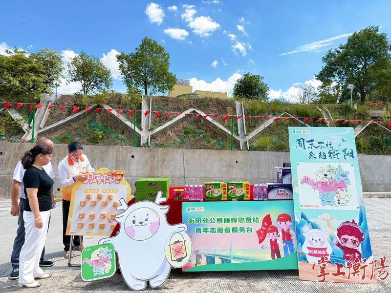 雁峰收费站创新推出“十一欢乐行,幸运抽好礼”活动。司乘通过刮刮乐获取专属盲盒,可兑换衡阳鱼粉、衡山云雾茶等地方特产,附赠手写雁城文旅故事卡片,以“味觉+文化”双重体验传递地域风情等。