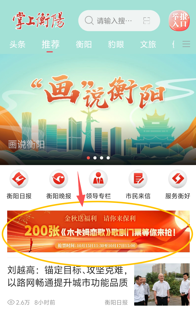 1.抢票平台:识别下图二维码,下载并登录“掌上衡阳”客户端,即可参加活动,200张票先到先得,抢完即止!