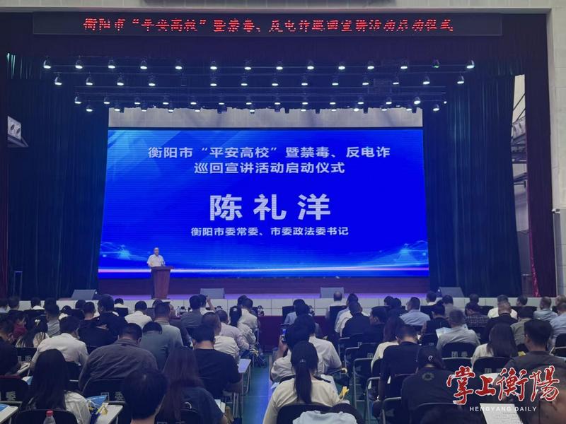 10月16日下午,衡阳市“平安高校”暨禁毒、反电诈巡回宣讲活动启动仪式在湖南环境生物职业技术学院举行,市委常委、市委政法委书记陈礼洋出席并讲话。