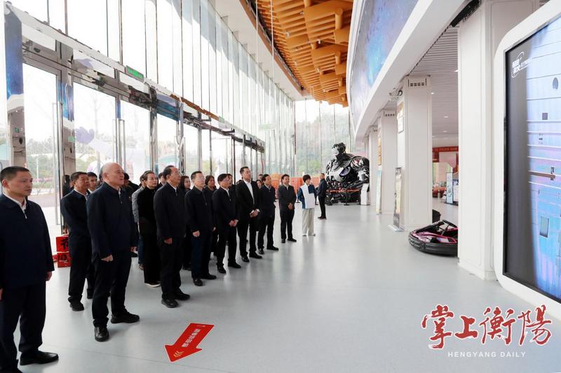 ▲10月21日,杨浩东与人大代表们在祝融探火太空体验馆调研。
