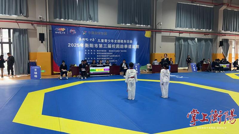 12月20日,衡阳市第三届校园跆拳道比赛在高岭小学火热开赛。来自全市各中小学的500余名“跆拳小将”汇聚一堂,在品势与竞技等项目中展开激烈角逐,现场气氛高涨、活力四射。