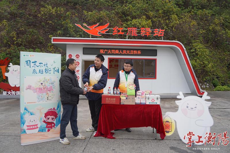 ▲衡阳高速志愿者向各地司乘人员推介衡阳美景美食等。