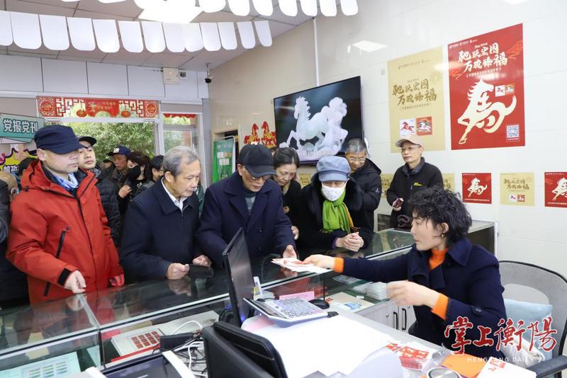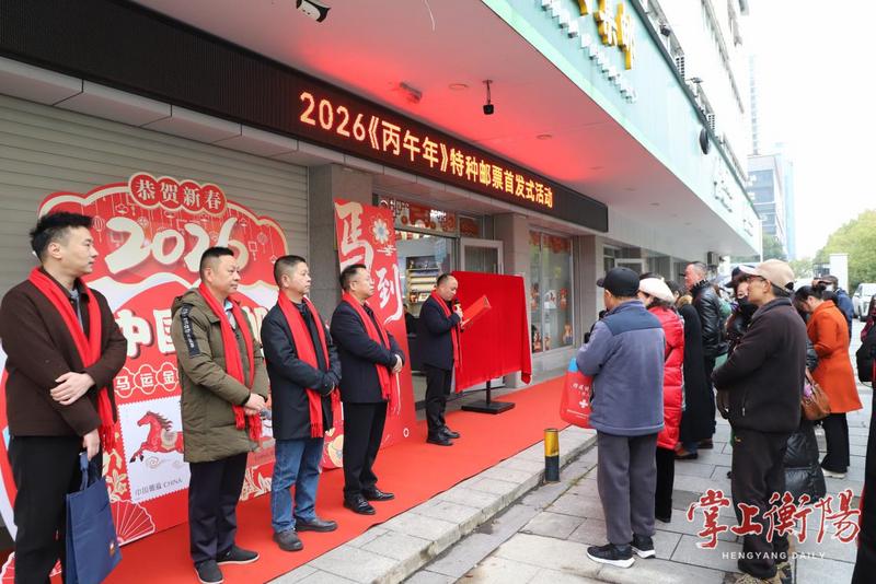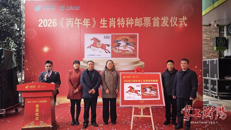 1月5日,中国邮政《丙午年》特种邮票在衡阳市邮政分公司集邮营业厅正式发行,这套承载着中华优秀传统文化与时代精神的马年生肖邮票,点燃了衡阳集邮爱好者的购买收藏热情。上午8点半,衡阳邮政在销售现场举行喜庆简短的首发式,该分公司、市邮政管理局以及省邮政分公司专业相关领导共同为马年生肖邮票首发揭幕,并给广大邮友送上“一马当先”“万马奔腾”的浓情祝福。