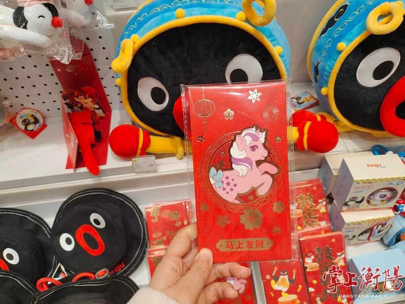 在衡阳各大商场的文创集合店内,“马上有钱”“马上如意”“马到成功”等主题货架格外醒目。毛绒挂件、创意红包、特色春联、趣味钥匙扣等商品,巧妙地将传统吉祥话与网络流行梗相结合,成为吸引年轻消费者的“流量密码”。
