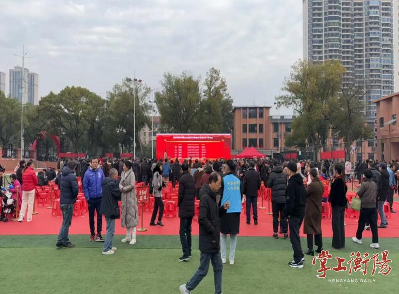 8时许,运动场已是人头攒动。不少家庭携老带幼提前到场,在工作人员引导下有序入场。等候区内,居民们热烈交流着对未来的憧憬,言语间满是对新生活的向往。现场还设置了信息公示展板,清楚展示房源详情、摇号规则及注意事项,让居民一目了然。