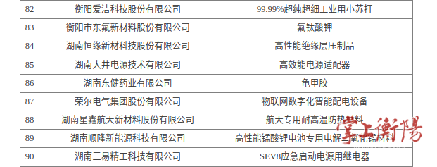 此次新增省级制造业单项冠军企业分别为:衡阳爱洁科技股份有限公司、衡阳市东氟新材料股份有限公司、湖南恒缘新材科技股份有限公司、湖南大井电源技术有限公司、湖南东健药业有限公司、荣尔电气集团股份有限公司、湖南星鑫航天新材料股份有限公司、湖南顺隆新能源科技有限公司、湖南三易精工科技有限公司。这些企业深耕细分市场,长期专注核心技术研发与工艺提升,在特定产品领域形成显著竞争优势,不仅成为全市工业经济的“压舱石”,更逐步成长为强化产业链供应链稳定的关键支点。它们以“匠心”铸就“匠品”,以创新驱动转型,有力印证了“培育一个冠军、带动一片产业”的发展路径,为衡阳制造业高质量发展注入源源不断的活力。
