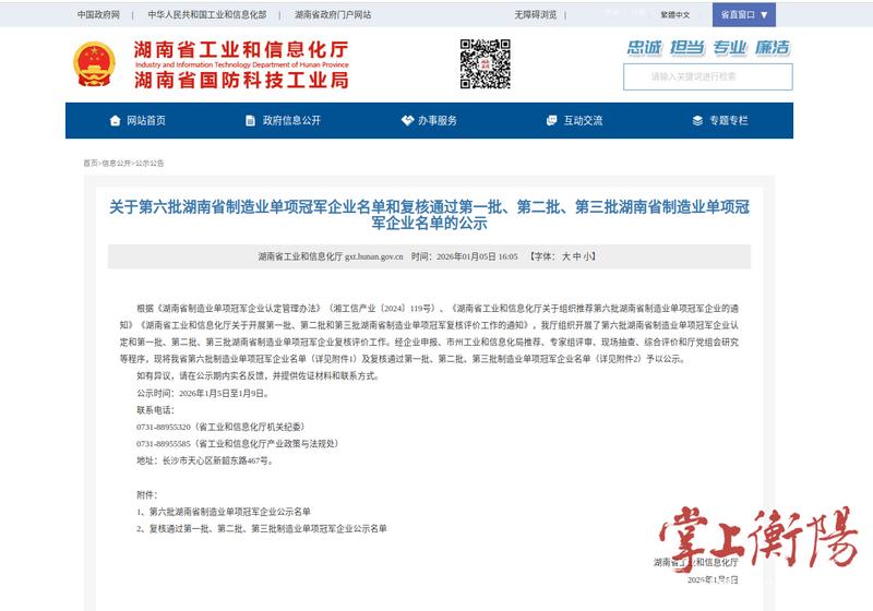 市工信局负责人表示,未来衡阳将继续深化制造业单项冠军培育工程,进一步健全培育机制,优化产业生态,推动更多企业走向专业化、精品化、特色化发展道路,助力“衡阳制造”向“衡阳智造”“衡阳创造”跨越升级。