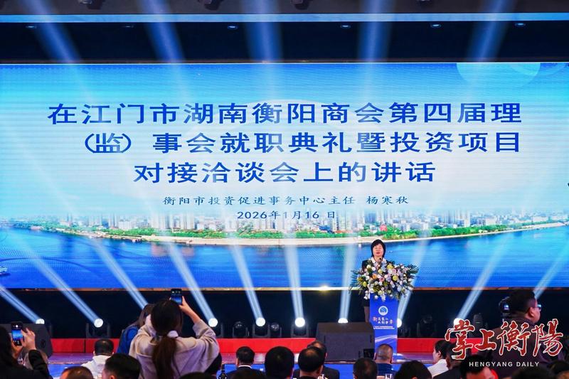 “衡”商聚“江”,共创华章。1月16日晚,广东省江门市衡阳商会第四届理(监)事会就职典礼暨投资项目对接会举行。来自全国各地的商会代表、各界嘉宾和扎根江门奋斗的衡阳籍企业家齐聚一堂,以乡情为引,以发展为题,共促两地合作共赢。