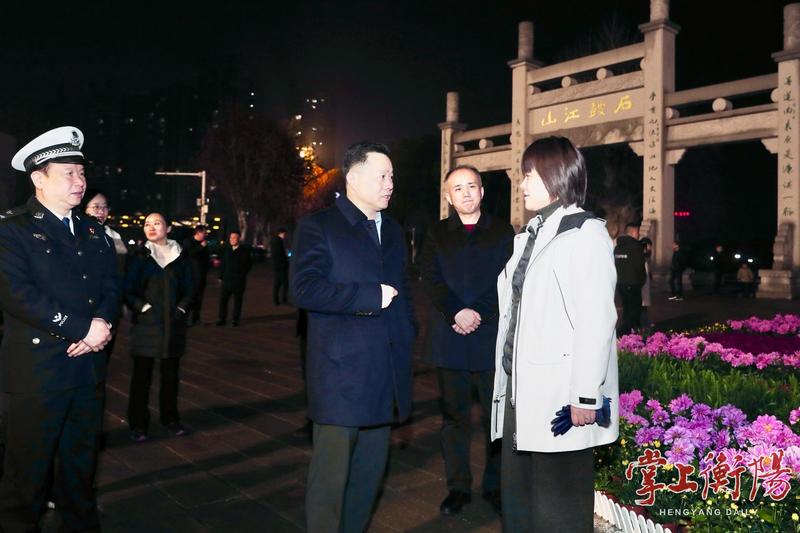 沿着中山南北路,刘中杰分别查看石鼓书院、雁峰公园等地春节氛围营造情况,重点关注花卉摆放、灯光装饰等细节,他指出,要进一步提升花卉布置的层次感和观赏性,优化灯光布局、适度提升亮度,让灯光与景观、文化深度融合,更好地烘托节日氛围。要扎实做好烟花爆竹禁燃禁放工作,强化宣传引导、严格巡查管控,切实守护城市空气质量和群众生命财产安全。