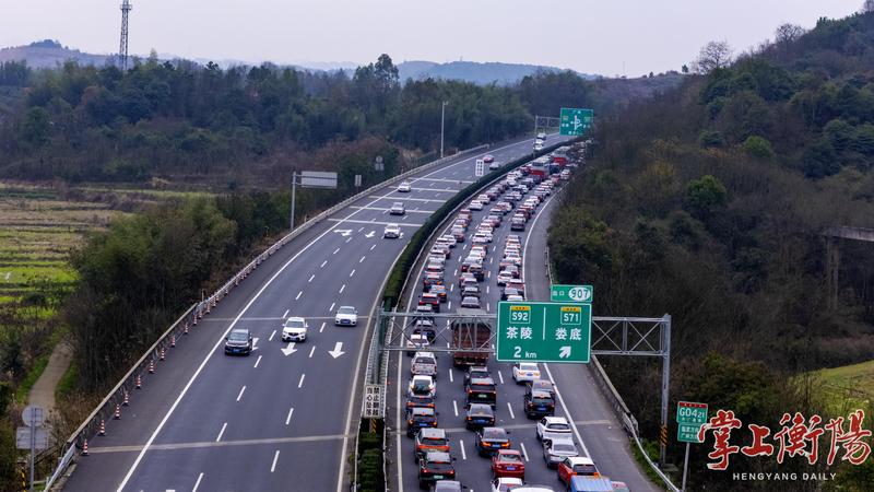 ▲春节假期,数以万计的车辆奔上衡阳高速。