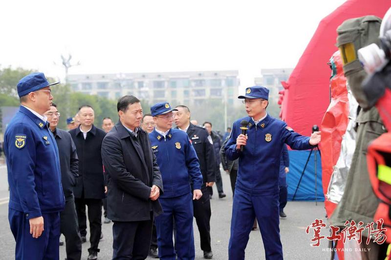 演练结束后,刘中杰察看应急装备展示,并慰问参演人员。刘中杰强调,要总结运用好演练成果,健全科学指挥体系,优化完善应急预案,常态化开展应急演练,不断提升应急指挥水平和处置能力。各级各部门要以“时时放心不下”的责任感,持续深化消防安全隐患排查整治,构建人防物防技防相结合的监测、应对和处置体系,切实筑牢消防安全防线。要压实主体责任,健全联动机制,不断提升体系化作战能力,坚决防范遏制重特大事故发生。