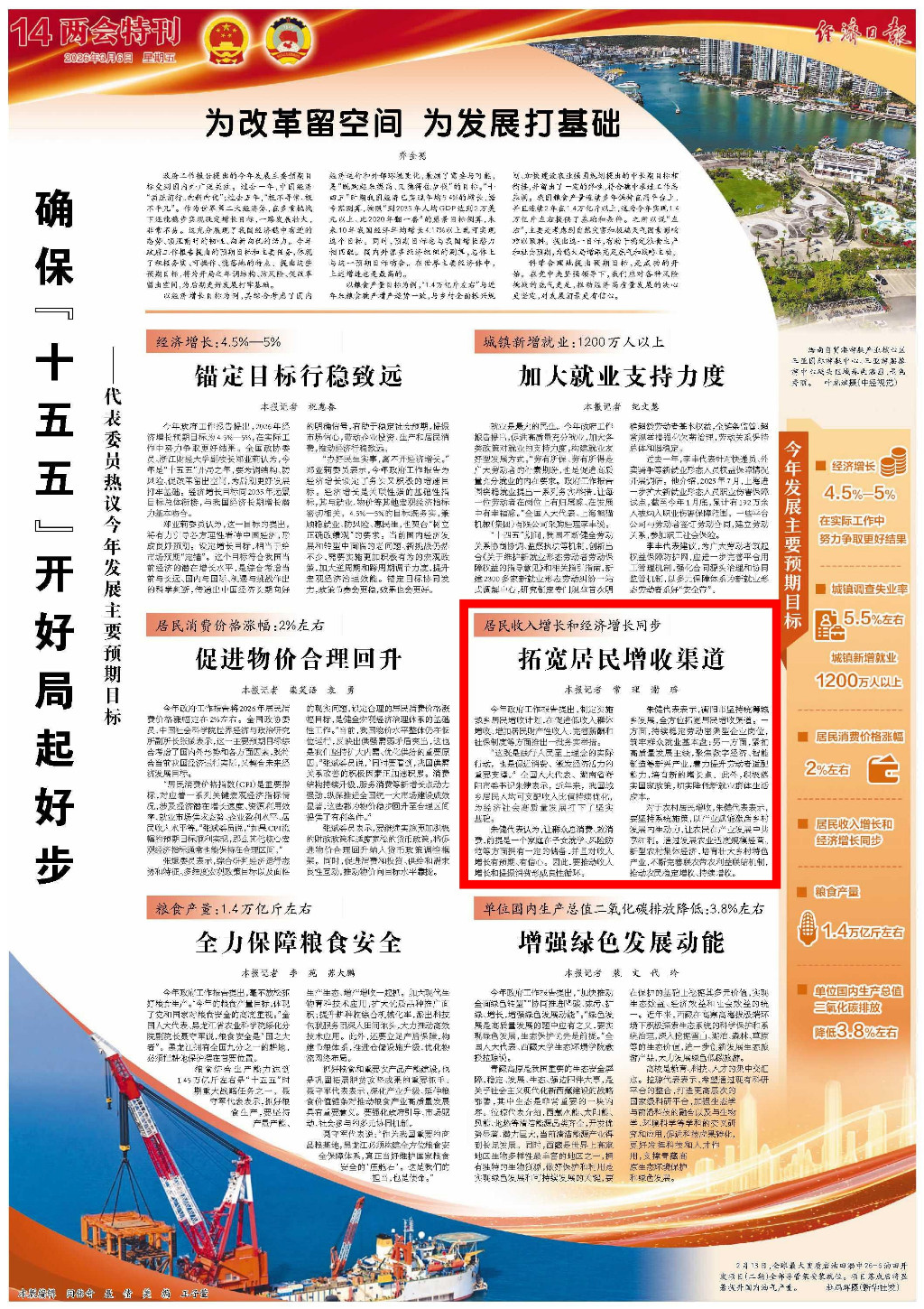对于农村居民增收,朱健代表表示,要坚持系统施策,以产业赋能激活乡村发展内生动力,让农民在产业发展中共享红利。通过发展农业适度规模经营、新型农村集体经济,培育壮大乡村特色产业,不断完善联农带农利益联结机制,推动农民稳定增收、持续增收。