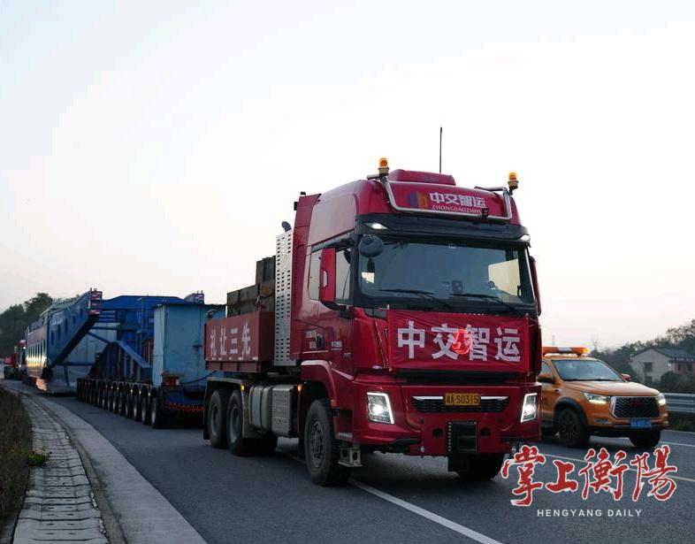 本次大件运输车体长100米、宽5.224米、高4.95米,配276个车轮。车队从衡阳出发,经白沙大道、南三环路,由雨母山收费站驶入许广高速,转衡邵高速、泉南高速,进入武深高速,当日在攸县服务区休整,次日在官庄服务区二次休整,第三日由北盛收费站下高速,预计3月14日17时左右抵达,全程约345公里。