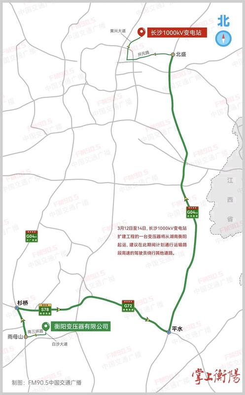 3月12日凌晨5时,一辆车货总重达445吨的“巨无霸”变压器从特变电工衡阳变压器有限公司缓缓驶出,踏上奔赴长沙1000kV变电站的旅程。