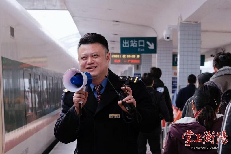 ▲2026年春运期间,衡阳火车站工作人员引导旅客平安有序出行。