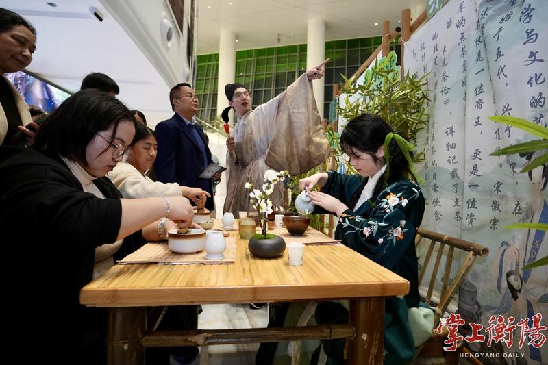 演出当晚,衡阳保利大剧院大厅变身宋韵空间,全新升级的“南孔市集”火热开启。市集围绕“跟着宋词游衢州”“诗画山水最衢州”“人间美味在衢州”三大主题,打造寻宝、对弈、品茶、祈福、对诗五大沉浸式互动场景,带领观众沉浸式体验宋韵风雅。观众可寻找文创摊主解锁纪念票,参与棋局对弈、宋式点茶、投壶祈福、诗词对答等趣味活动,集齐印章、领取定制好礼,一站式感受衢州的文化、山水与烟火魅力。