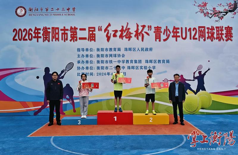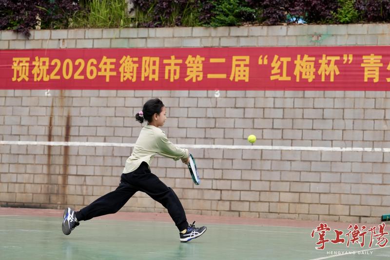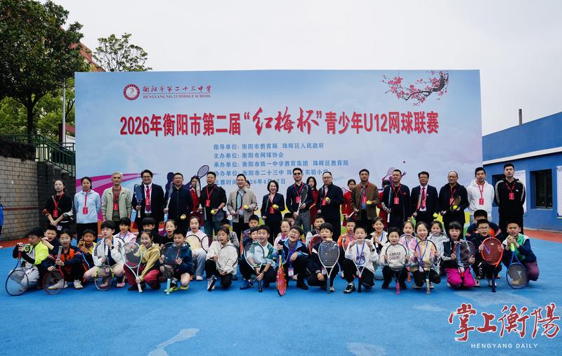 4月17日,2026年衡阳市第二届“红梅杯”青少年U12网球联赛在衡阳市第二十三中学举行,来自珠晖区实验小学、船山实验小学、柘里渡小学、阳光小学等小学的32名青少年选手齐聚赛场,切磋技艺,绽放风采。