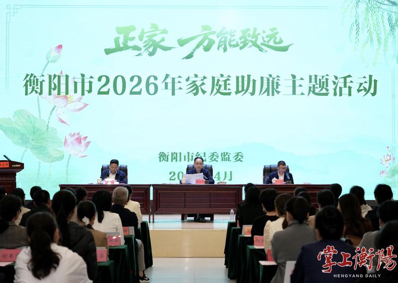 4月17日,“正家,方能致远”衡阳市2026年家庭助廉主题活动在衡阳市家风馆举行,市委常委、市纪委书记、市监委主任杨卫平出席,强调要深刻把握新时代家风建设的重要意义,以清廉家风涵养清朗党风政风,以家庭“小气候”温润政治生态“大环境”,为推进衡阳高质量发展贡献家庭力量。市委各部委,市直单位,市管企业和市属医院党政“一把手”以及市纪委监委、市委组织部班子成员家属参加活动。