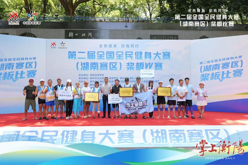 4月25日至26日,第二届全国全民健身大赛(湖南赛区)桨板比赛在郴州北湖公园挥桨开赛。衡阳代表队以总积分242分的绝对优势,力压群雄,勇夺丙组(40—60岁)桂冠。