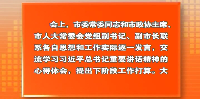 会上,市委常委同志和市政协主席、市人大常委会党组副书记、副市长联系各自思想和工作实际逐一发言,交流学习习近平总书记重要讲话精神的心得体会,提出下阶段工作打算。大家一致表示,将认真学习贯彻领会习近平总书记重要讲话精神,增强忧患意识、提高工作本领,继续毫不放松抓紧抓实抓细疫情防控各项工作,不获全胜决不轻言成功,统筹做好经济社会发展各项工作,坚持“两手抓”,确保“双胜利”。