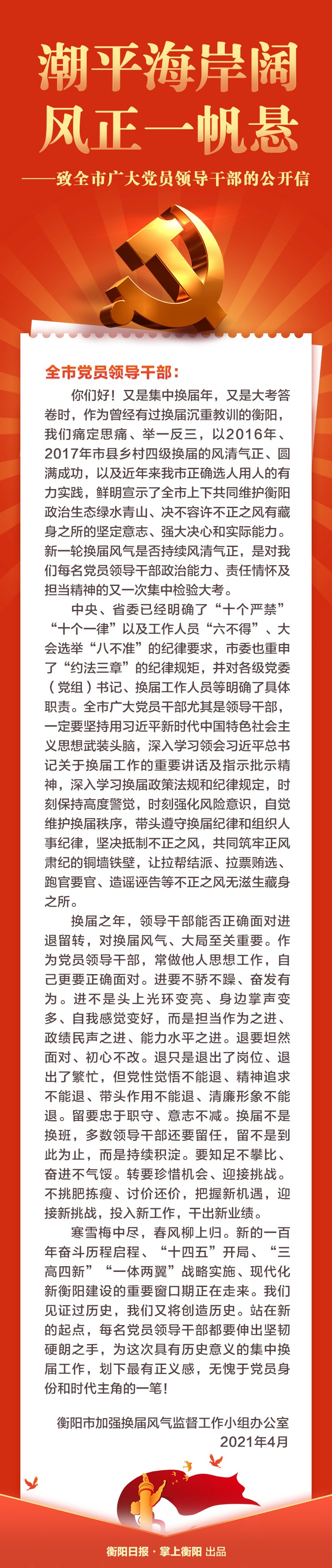 这里有一封致全市广大党员领导干部的公开信,请查收