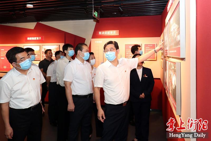 在衡阳市党史学习教育基地宣誓广场上,邓群策带领党员领导同志重温了入党誓词,与大家集体参观衡阳党史百年展、党风党纪百年展和党史学习教育交互体验馆,并聆听了一堂生动的音乐党史课,接受党性教育,赓续红色血脉。