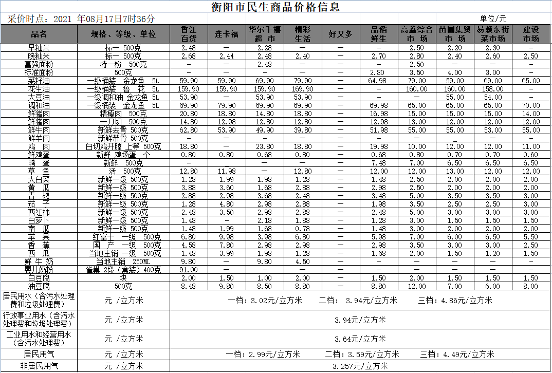 【物价】 2021-08-17衡阳市民生价格信息
