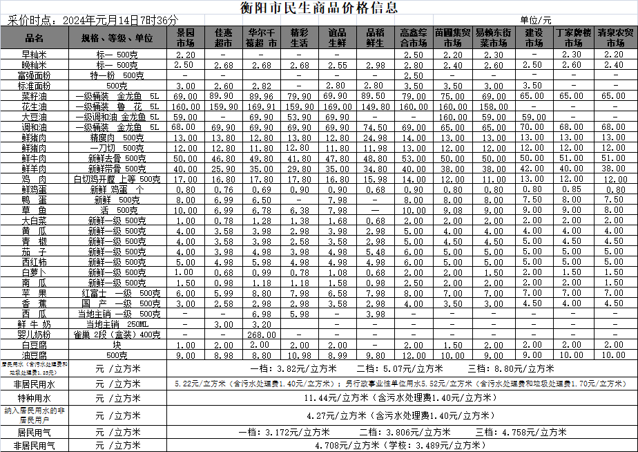 【物价】 2024-1-14衡阳市民生价格信息