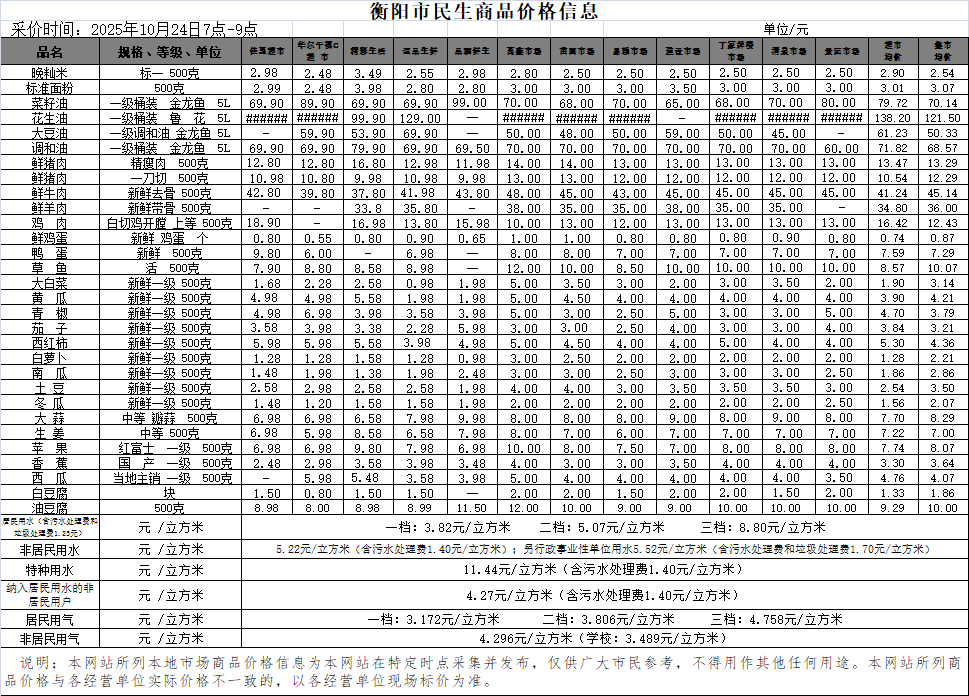 【物价】 2025-10-24衡阳市民生价格信息