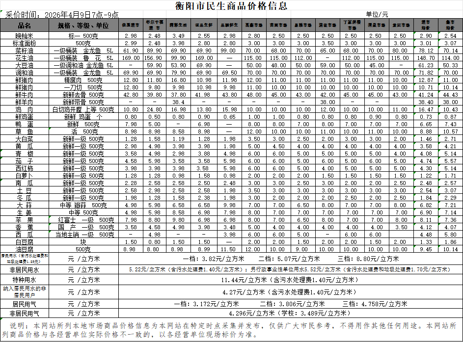【物价】 2026-4-9衡阳市民生价格信息