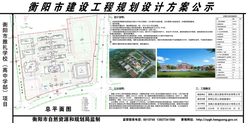 衡阳市自然资源和规划局公示了《衡阳市雅礼学校(高中学部)项目建设工程规划设计方案》