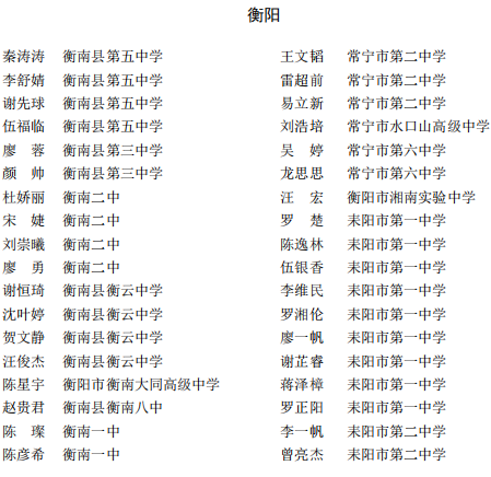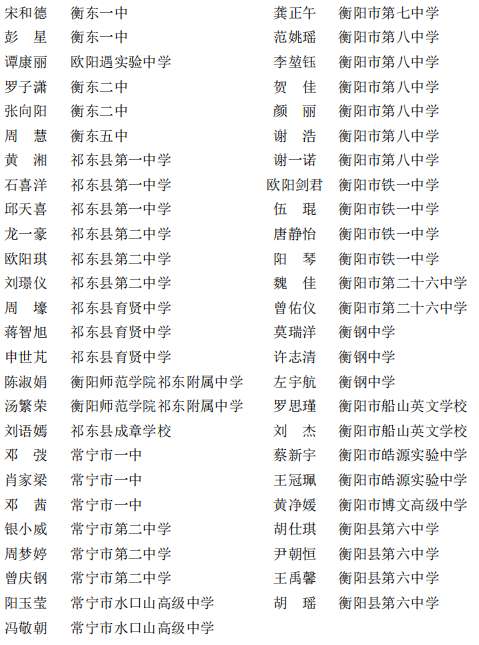 湖南省普通高中省级优秀学生名单
