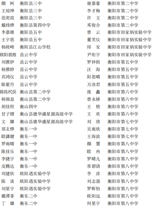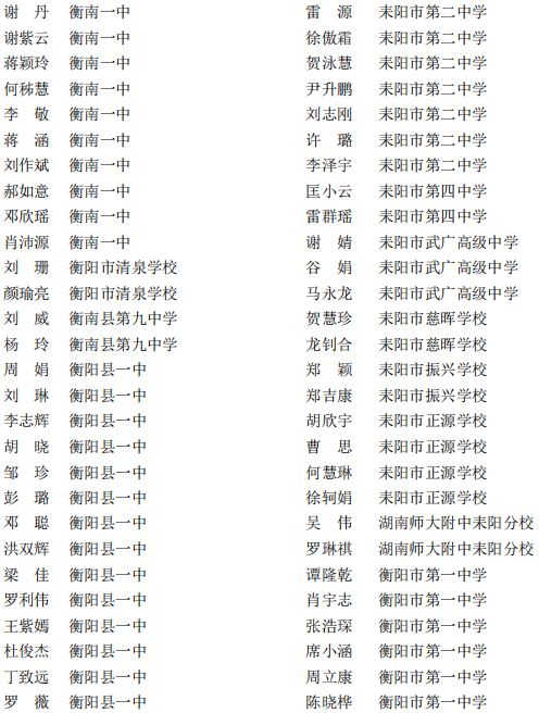 近日,湖南省发布《关于评选2020—2021学年度湖南省普通中小学省级三好学生、优秀学生干部及普通高中省级优秀学生的通知》,衡阳多名学生榜上有名。