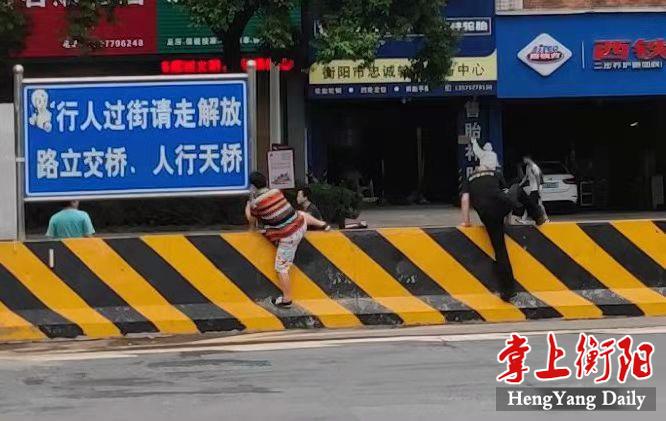 8月25日上午,笔者在解放路立交桥底层北出口,发现在短时间内竟有多人从南华大学西门段横过马路,不断上演惊魂的“翻墙跨”。