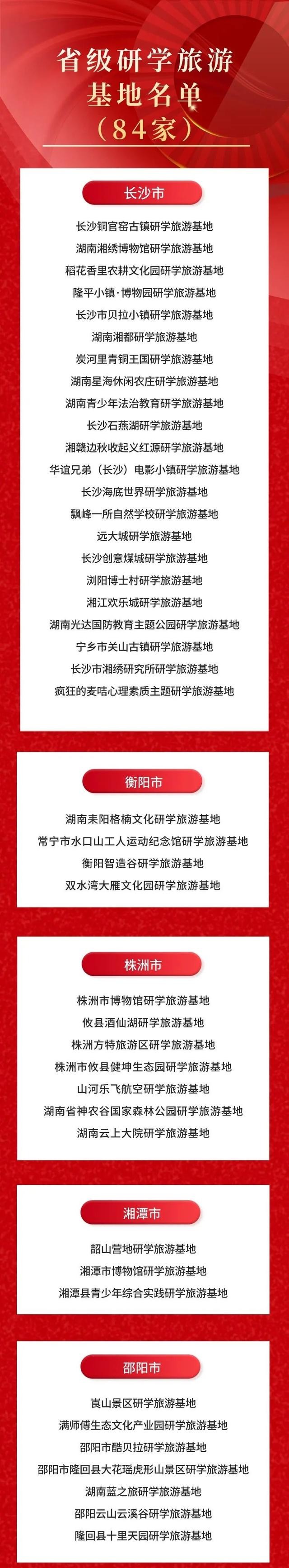 104家湖南省研学旅游(示范)基地名单确定,衡阳5地入选