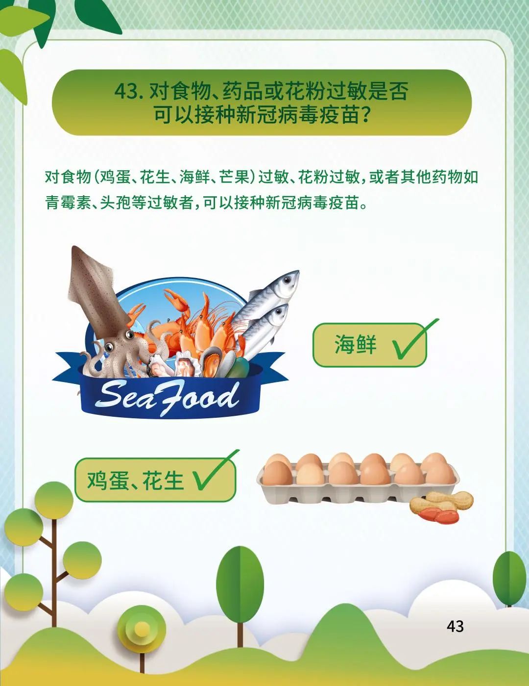 5.对食物(鸡蛋、花生、海鲜、芒果)过敏、花粉过敏,或者其他药物如青霉素、头孢等过敏者,可以接种新冠病毒疫苗。