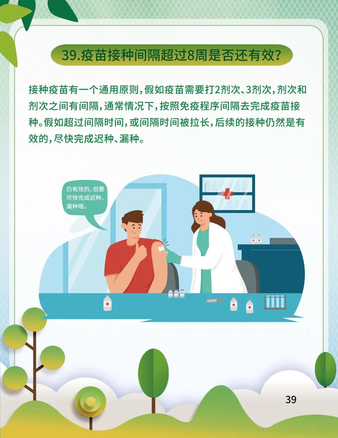 2.接种疫苗有一个通用原则,假如疫苗需要打2剂次、3剂次,剂次和剂次之间有间隔,通常情况下,按照免疫程序间隔去完成疫苗接种。假如超过间隔时间,或间隔时间被拉长,后续的接种仍然是有效的,尽快完成迟种、漏种。