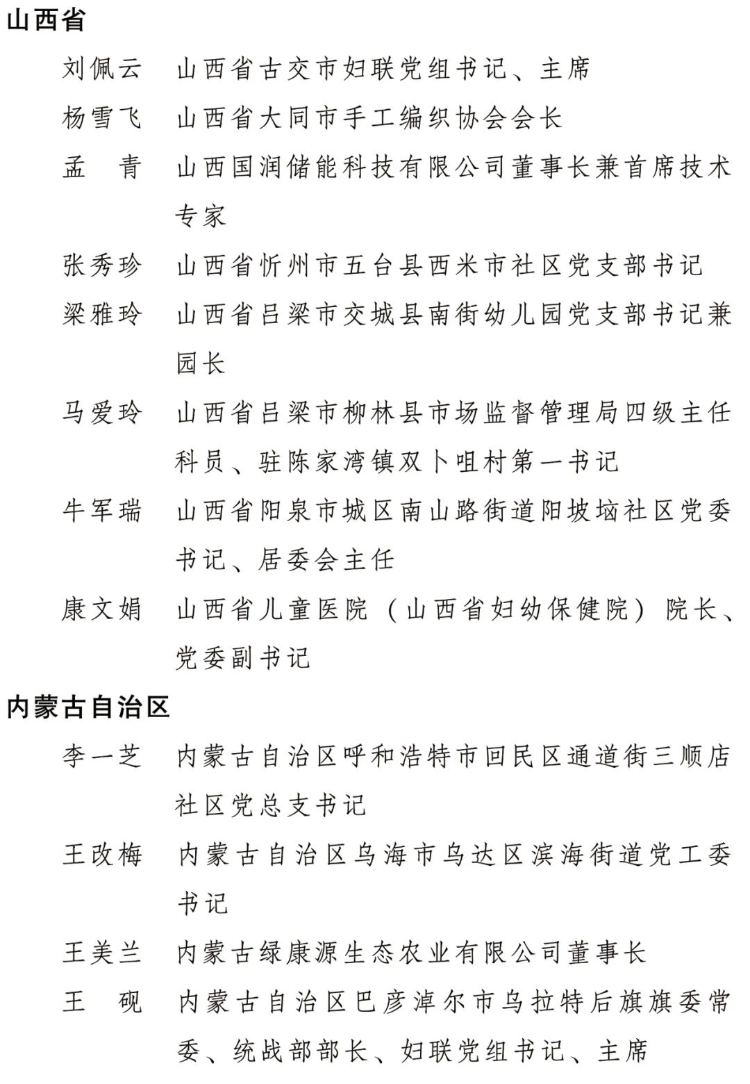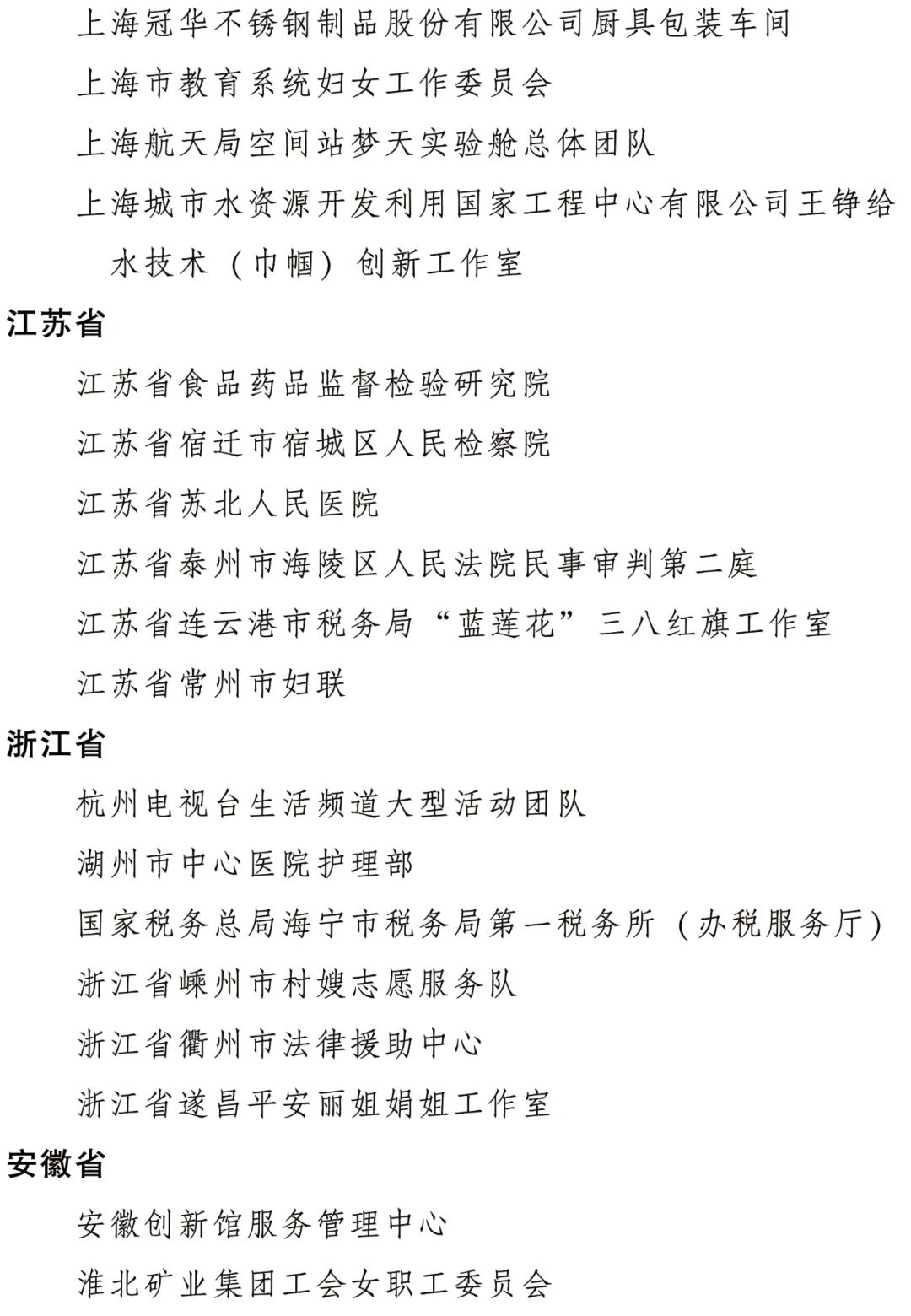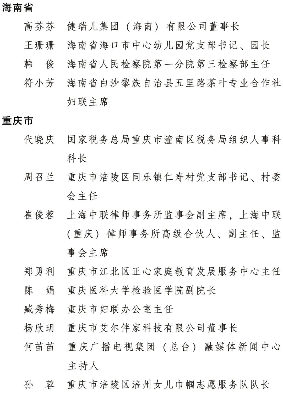 为表彰先进、树立榜样,进一步引领和激励广大妇女坚定不移听党话、跟党奋进新征程,豪情满怀、意气风发投入推进中国式现代化的伟大实践,日前,全国妇联决定,授予钱素云等10人全国三八红旗手标兵称号,授予蔡凤辉等298人全国三八红旗手称号,授予北京高校思想政治理论课高精尖创新中心等199个单位全国三八红旗集体称号。