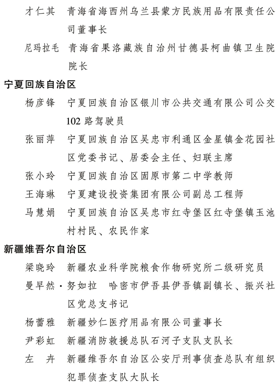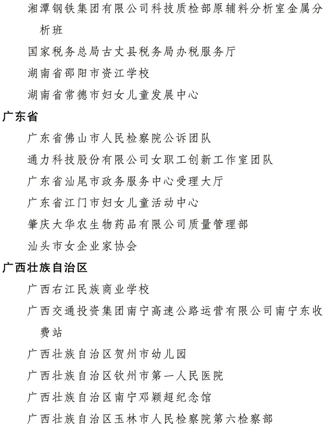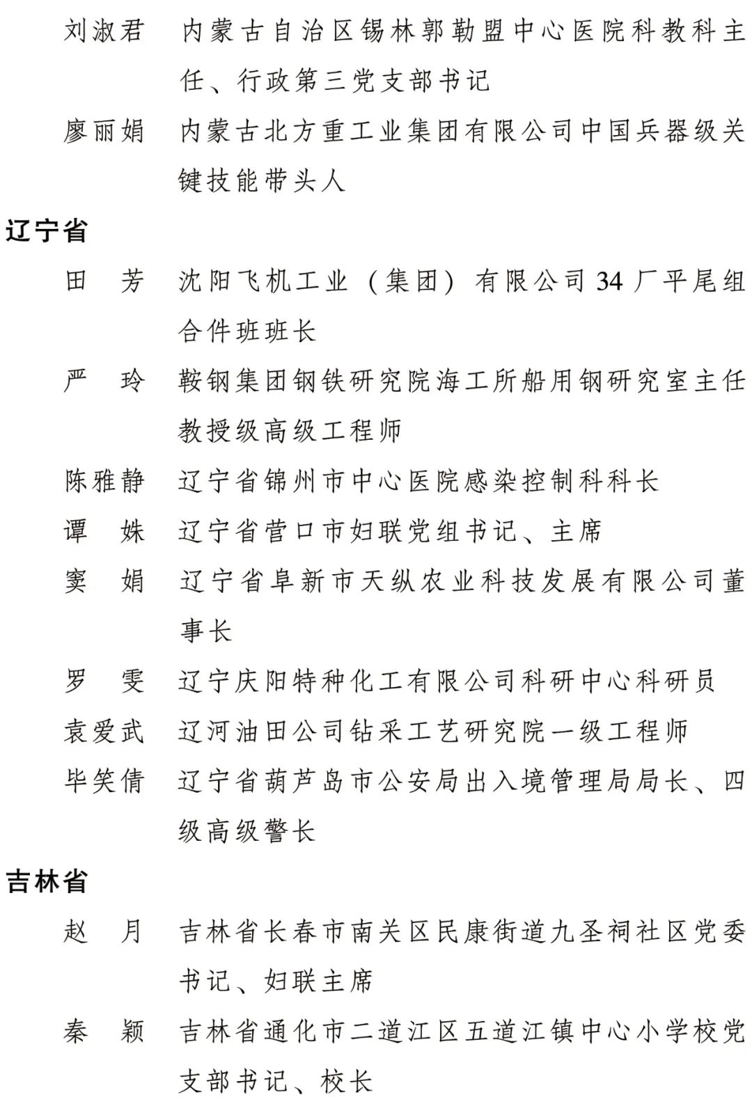 为表彰先进、树立榜样,进一步引领和激励广大妇女坚定不移听党话、跟党奋进新征程,豪情满怀、意气风发投入推进中国式现代化的伟大实践,日前,全国妇联决定,授予钱素云等10人全国三八红旗手标兵称号,授予蔡凤辉等298人全国三八红旗手称号,授予北京高校思想政治理论课高精尖创新中心等199个单位全国三八红旗集体称号。