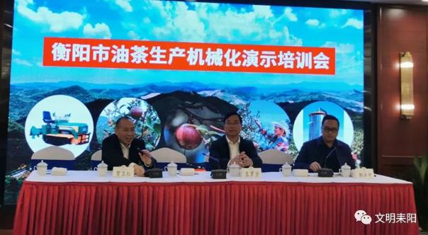 日前 ,衡阳市农业技术服务中心主办,耒阳市农机事务中心协办的衡阳市油茶生产机械化演示培训会在耒阳举行。衡阳市人大常委会副主任侯明星、省农机事务中心二级巡视员杨国成、耒阳市副市长郭兴中到会观摩指导。衡阳市农业农村局、财政局、林业局等相关单位负责人,衡阳各县市相关单位负责人及油茶种植专业合作社代表等200多人参加演示培训活动。