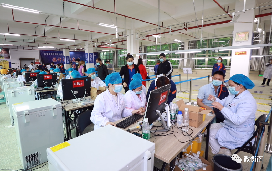 5月19日,衡南首个新冠疫苗方舱接种点在衡南工业集中区投入使用,服务企业员工及周边区域群众接种,日接种数量可达1800余针。县委副书记、县长李军到现场检查指导工作。