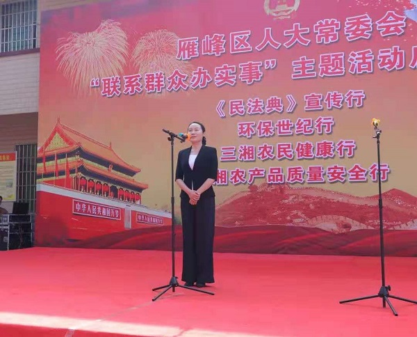 在以“食在雁峰,绿色安全”为主题的“三湘农产品质量安全行”活动中,食品安全快速检验车内,人大代表积极引导村民们“零距离”感受食品安全检验全过程,增强群众食品安全意识,共同守护群众舌尖上的安全;在以“民法典与生活同行”为主题的“民法典宣传行”活动中,人大代表带着民法典耐心向村民介绍民法典宣传手册,让村民对民法典有了新认识;在以“关注农民健康,为群众办实事”为主题的“三湘农民健康行”活动中,一位紧揣着装有各种检查报告资料袋的村民,撩起衣袖,伸出右手,正在接受人大代表的免费体检;在以“人与自然和谐共生”为主题的“环保世纪行”活动中,村民因为没领到“人与自然和谐共生”宣传T恤心里有点着急,人大代表走上前劝导,“‘人与自然和谐共生’宣传T恤没领到没关系,关键是要把‘人与自然和谐共生’理念领回家。”……一件件贴心的小事,一句句善意的提醒,一幕幕暖心的画面,都是人大代表为民办实事办好事的写照。