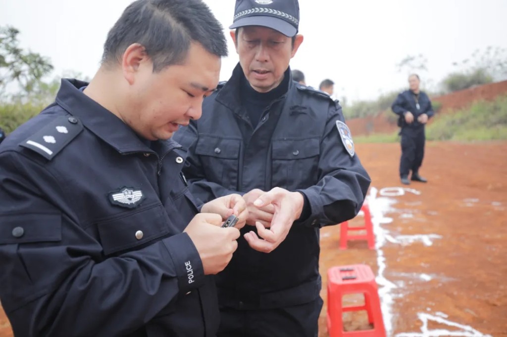 此次射击训练为期两天,分4批次进行,采取先理论后实操的方式,由转业军人出身的詹伟担任警务实战教官,并配备了6名安全员进行现场指导。在射击训练正式开始前,教官詹伟就枪支的结构原理、射击要领和安全注意事项等知识进行了详细讲解,并亲自示范握枪姿势、瞄准、击发、验枪等动作和流程,手把手教授参训民警进行操作,以确保动作规范、到位。其次明确了本次训练与考核的具体要求,全体参训民警必须在30秒内快速完成整个射击过程。参训民警个个精神饱满、听从指令,聚精会神地听讲,认真领会验枪、装弹、上膛、射击、退弹等操作技巧,严格按照考核要求,完成射击流程,充分展现了常宁公安民警纪律严明、作风严谨、能拼善赢的优良作风。